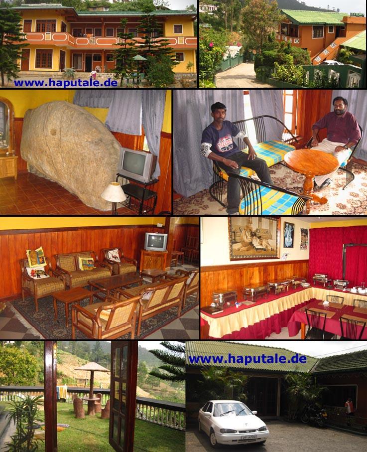 This is one of well known guesthouses in Haputale town. It has 27 rooms. Close to the center, placed on the southern ridge with best and unimpeded views over the lowlands of the island. Tissamaharama, the coastline (70 km), Udawalawe Nationalpark and the lopes around to Sherwood and Beragala. It belongs to Sampath Lamahewa. A new 3-floor building is nearby the main building. Both buildings are surrounded by lot of trees, bushes, vegetable garden and colourful flowers. Sri Lak View Holiday Inn has beautiful wooden teak and tuna furnitures like beds, dressing tables, chairs, racks, doors, couches, windows and stairs. They have several sitting areas are in the main hall, restaurant, down floor and outside in the green garden. A solid balcony goes around the main building. Checkout time is 10:30 AM.